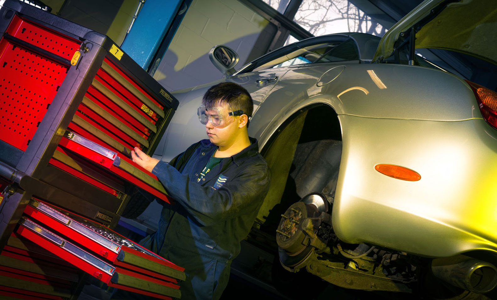 In addition, our motor vehicle department has a fully equipped on-site garage, with ramps, tools, diagnostic equipment and tyre fitting bays. As well as working on our fleet of internal combustion engined cars, we also have EV and Hybrid vehicle demonstration rigs, fully preparing you for real work environments.