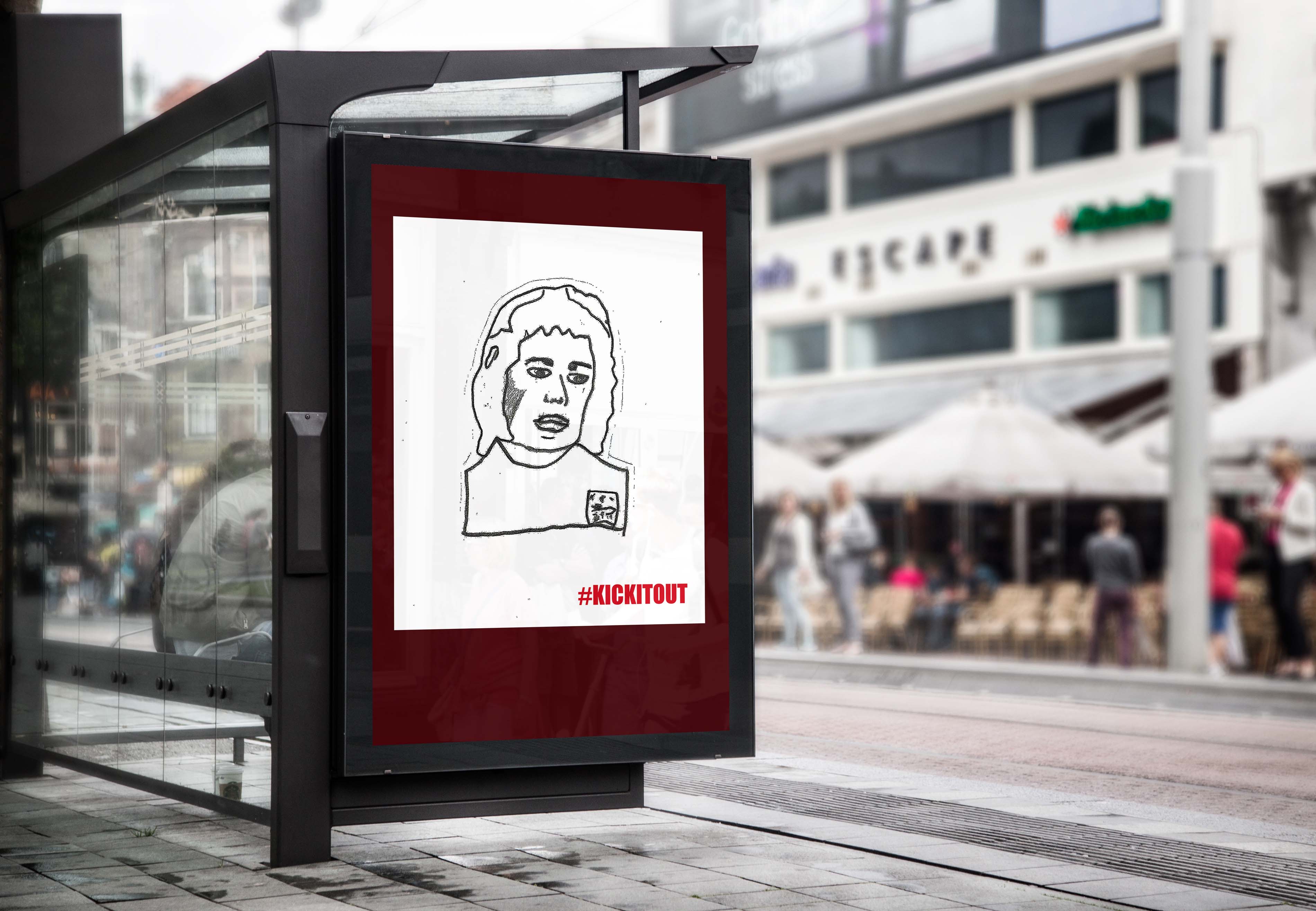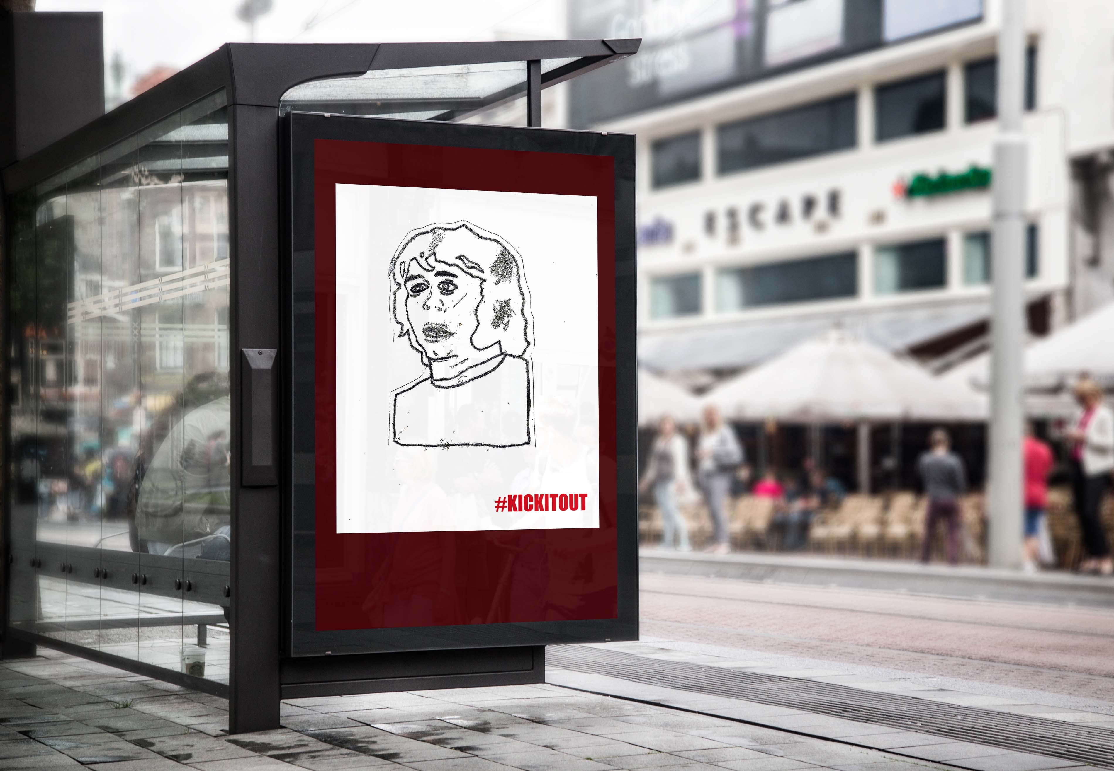 I have created a large poster with a series of my own line drawings of famous footballers and some text. The final piece was then edited in Adobe Photoshop to give a context for where the poster could be displayed.