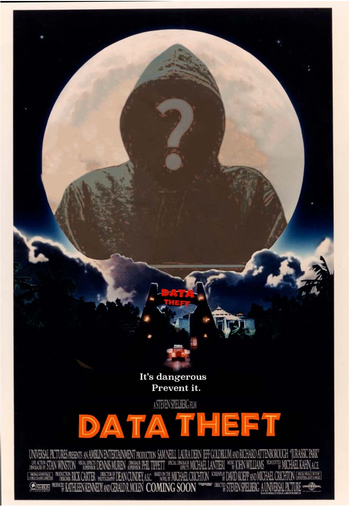 "For my Final pieces I created a series of Data theft related posters. I took inspiration from a company Varonis which had posters on cyber-crime. I replicated this by making posters which were well-known movie posters. I used posters from movies such as The Shining and Jurassic Park.