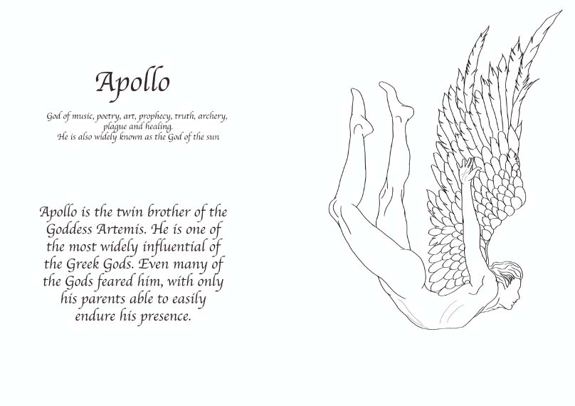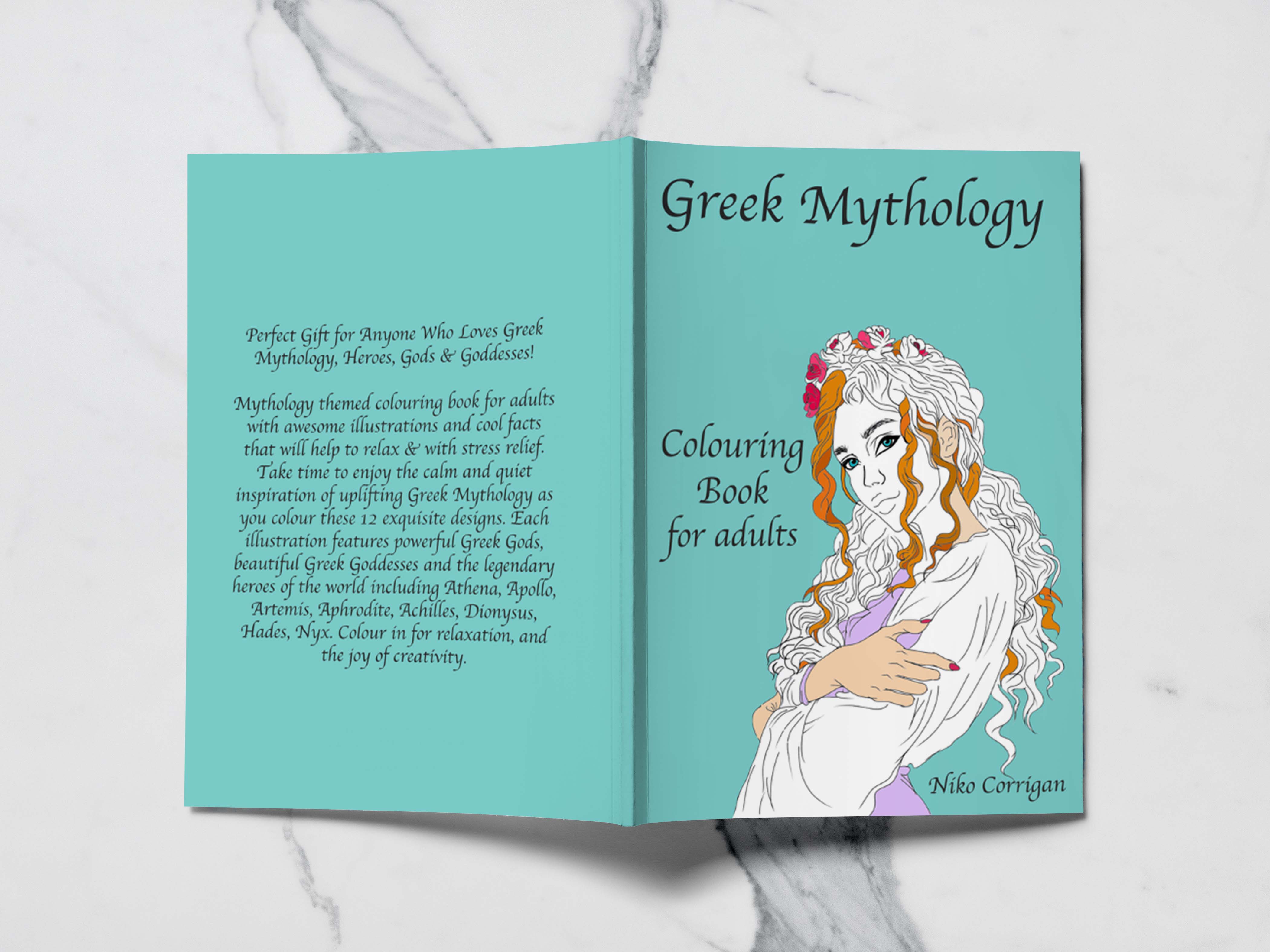 Take time to enjoy the calm and quiet inspiration of uplifting Greek Mythology as you colour these 12 exquisite designs. Each illustration features powerful Greek Gods, beautiful Greek Goddesses and the legendary heroes of the world including Athena, Apollo, Artemis, Aphrodite, Achilles, Dionysus, Hades, Nyx. Colour in for relaxation, and the joy of creativity."