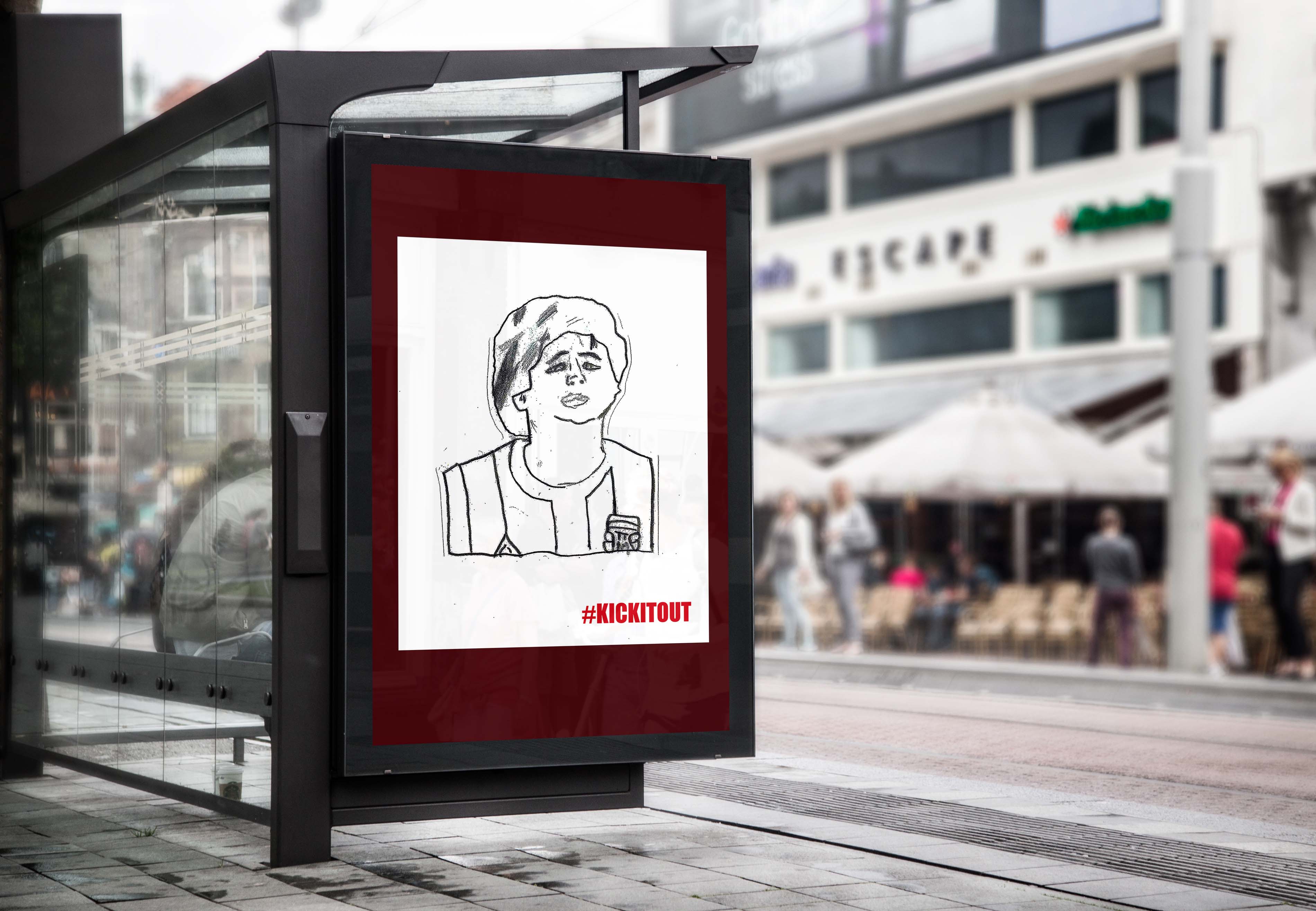 I have created a large poster with a series of my own line drawings of famous footballers and some text. The final piece was then edited in Adobe Photoshop to give a context for where the poster could be displayed.