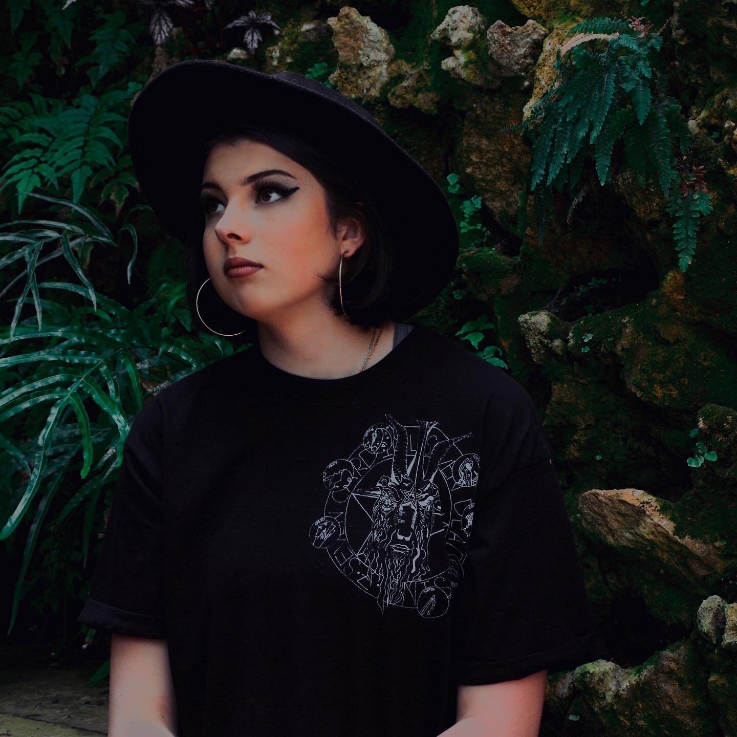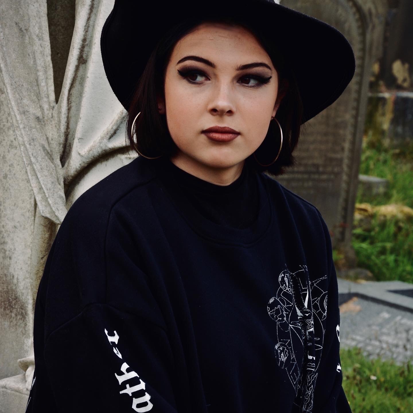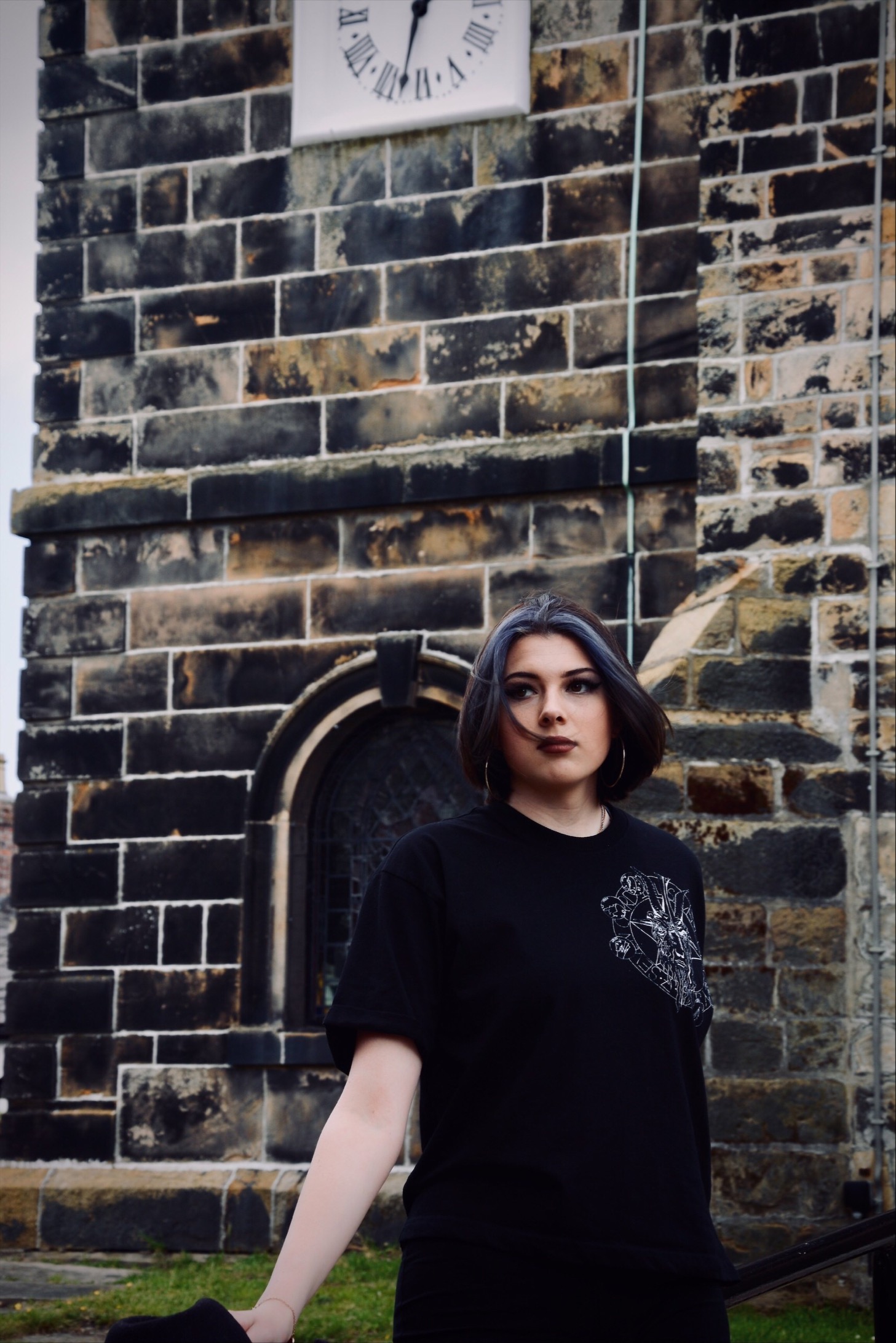 I wanted to incorporate screen printing so decided a clothing line would be a good way to showcase my ideas. I used motifs such as a statue of Baphomet for one design, and as goat for another because of its close affiliation with Satan. I then incorporated religious sayings in my design such as “forgive me father for I have sinned” when confessing sins in church. To ensure my final photographs were atmospheric and in keeping with my theme we shot in a local grave yard."