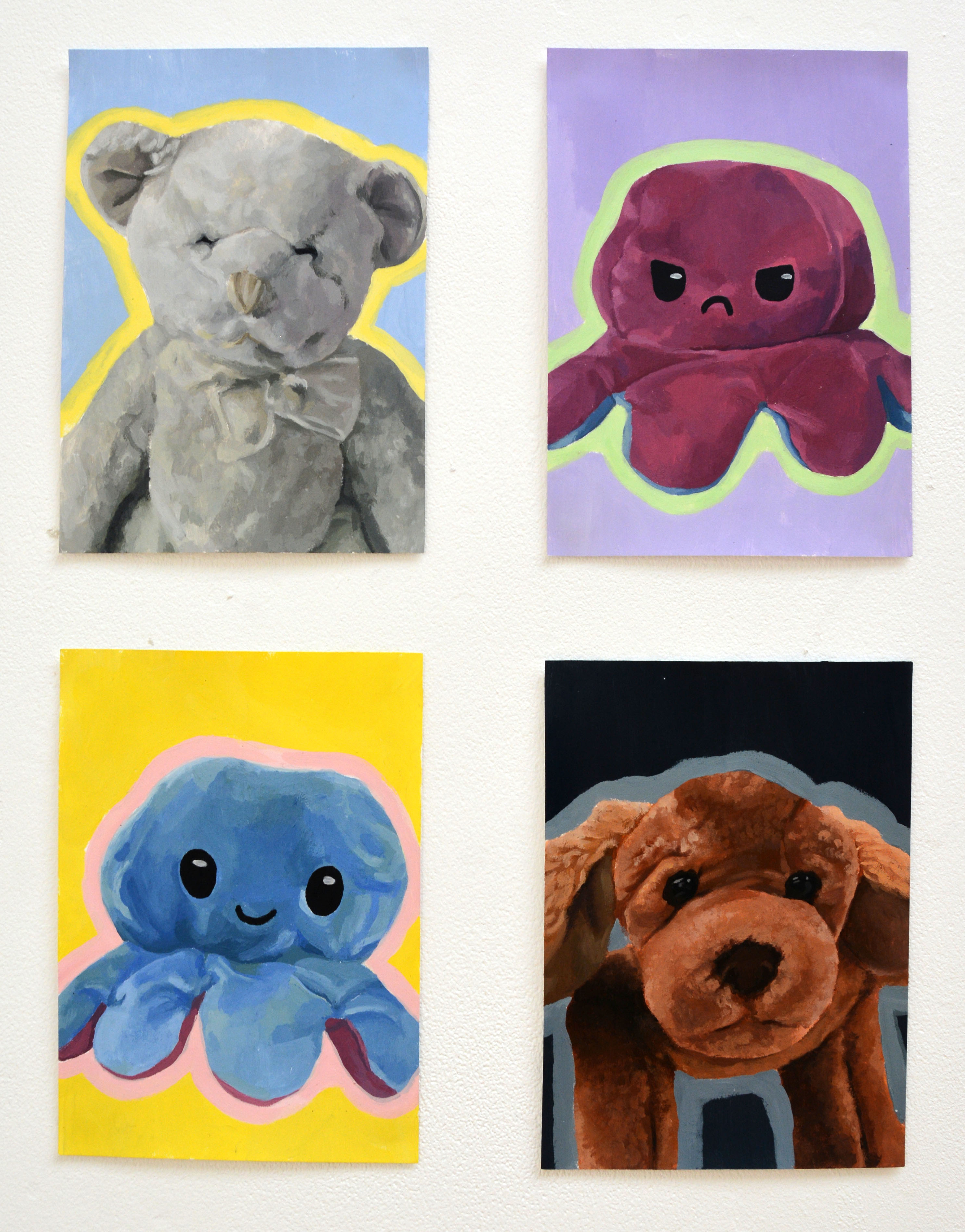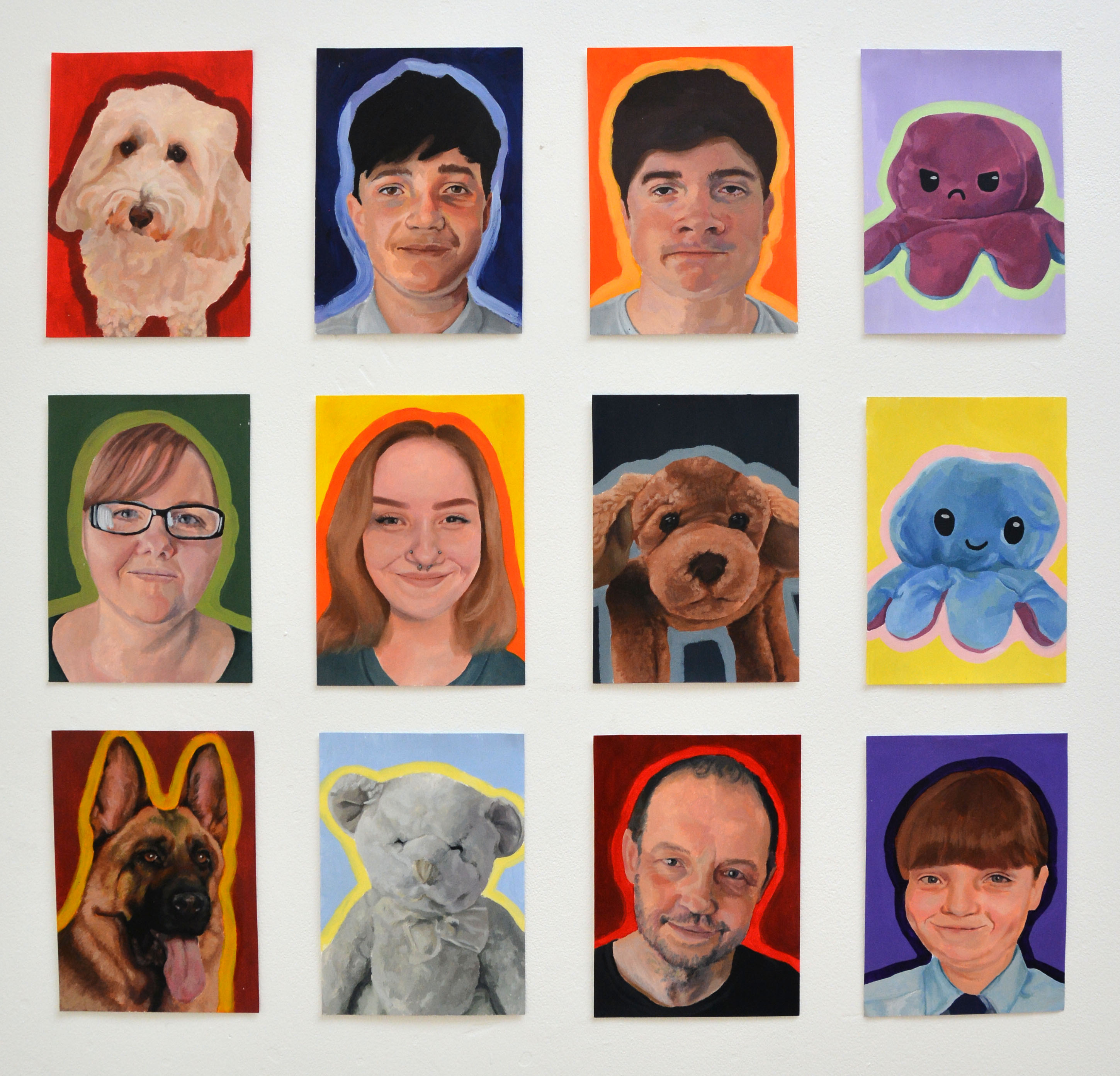 For this piece I wanted to create a “visual representation of emotion”, and so chose to show how I view the people, pets, and stuffed animals in my life, due to having synesthesia. Each A5 piece has a different combination of two colours that I felt reflected each person's characteristics the best (the colours I envision when thinking of them). I created this piece using acrylic paint because I feel most confident in working with this medium. I chose to create a series of images rather than a single large piece to show a difference in each of their individual characters, as well as to be able to move the painting around to create a variety of compositions.
