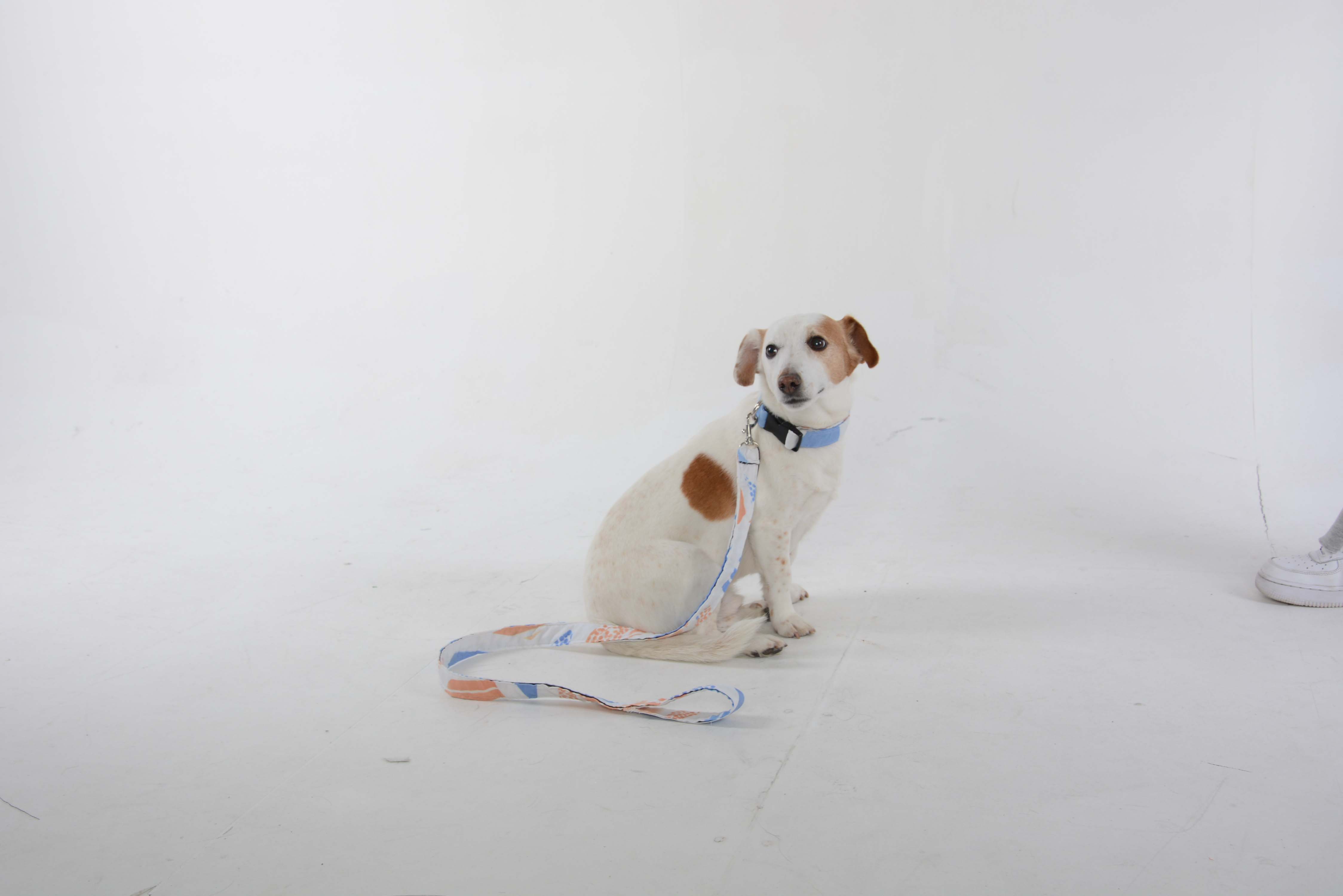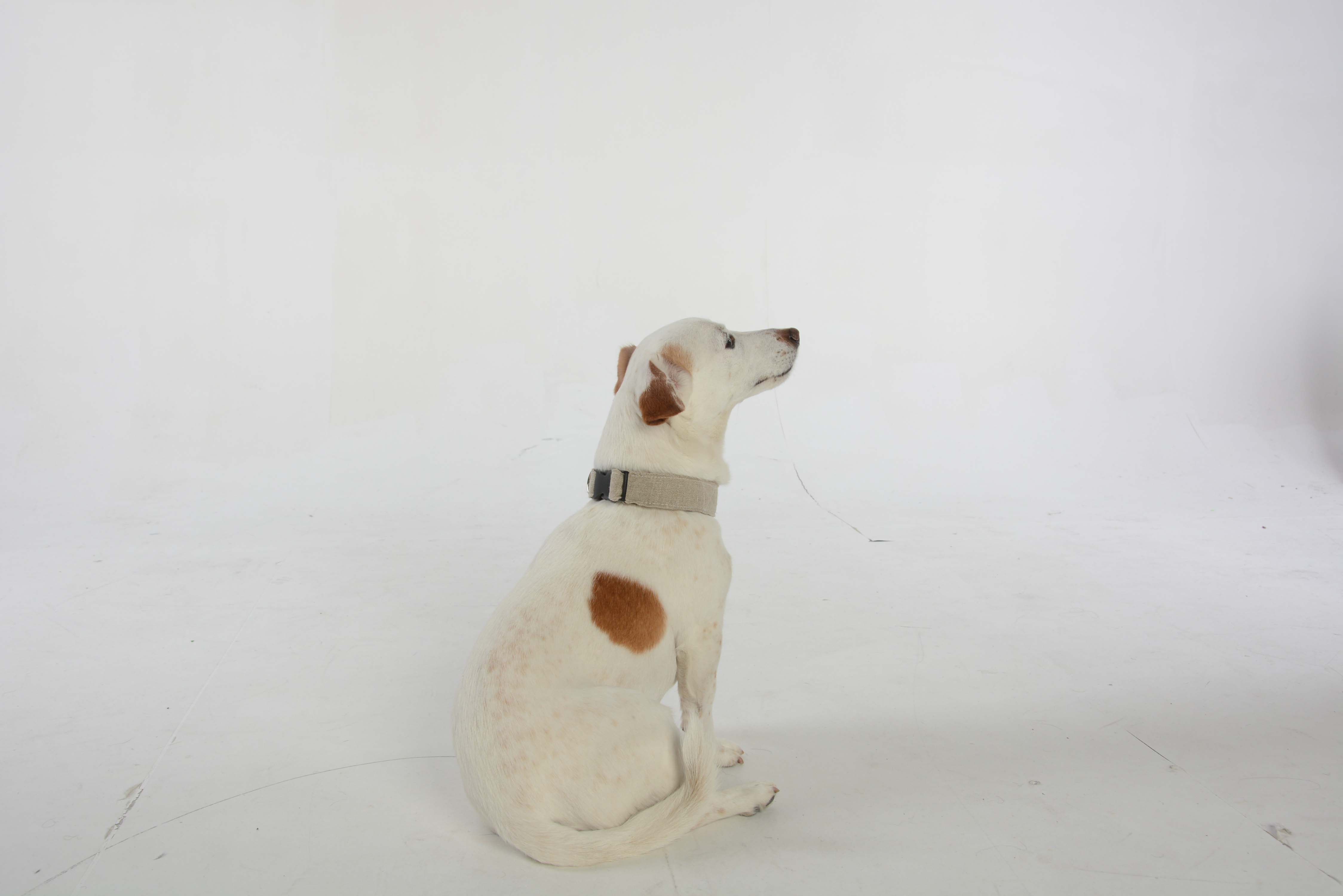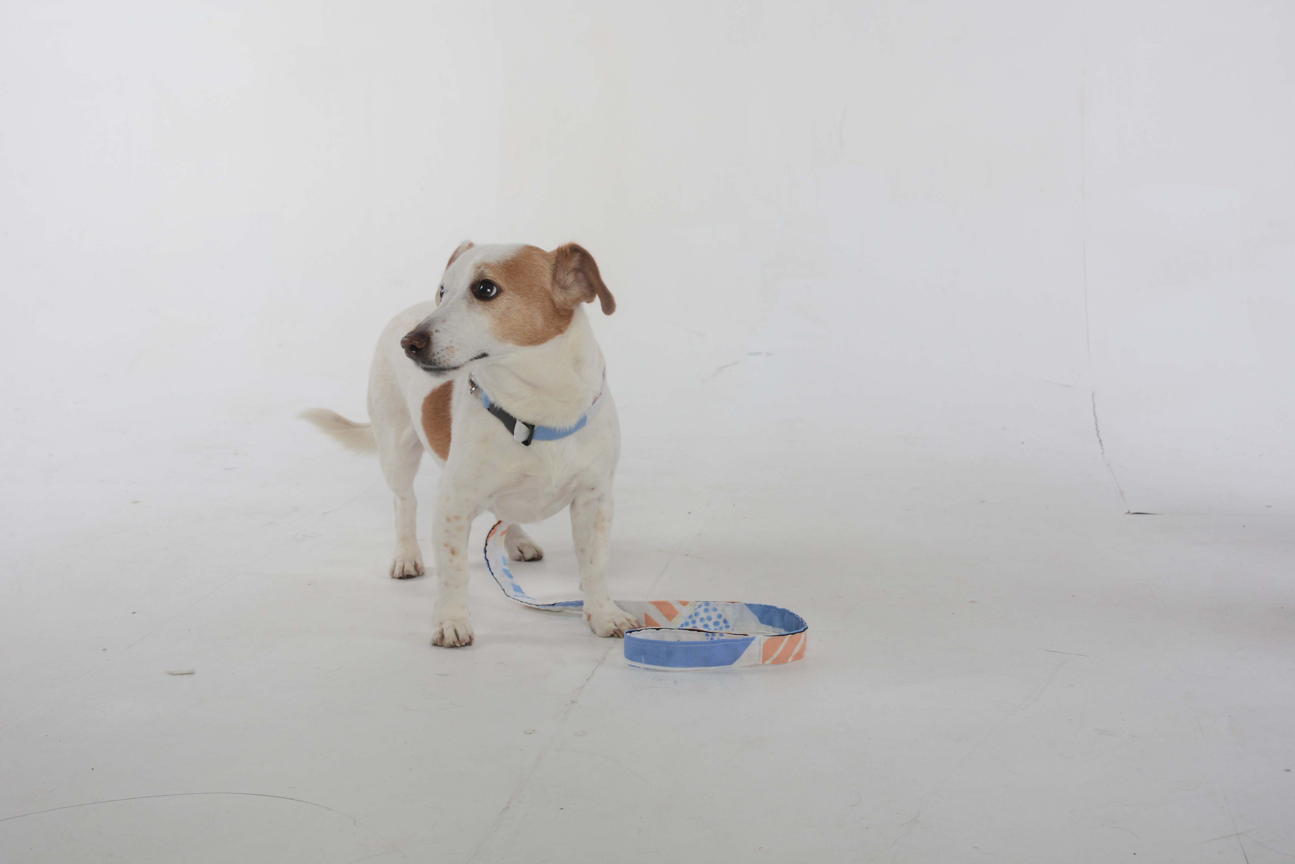 My pieces are my own designs for a dog coat, collars and leads. I created a series of printed fabrics using the transfer heat press and inks. I then made paper patterns and constructed all the pieces on the sewing machine, as I am confident with both free machine embroidery and stitching. I also created a photo shoot with my dog Patch as the model wearing all the dog accessories I had made.