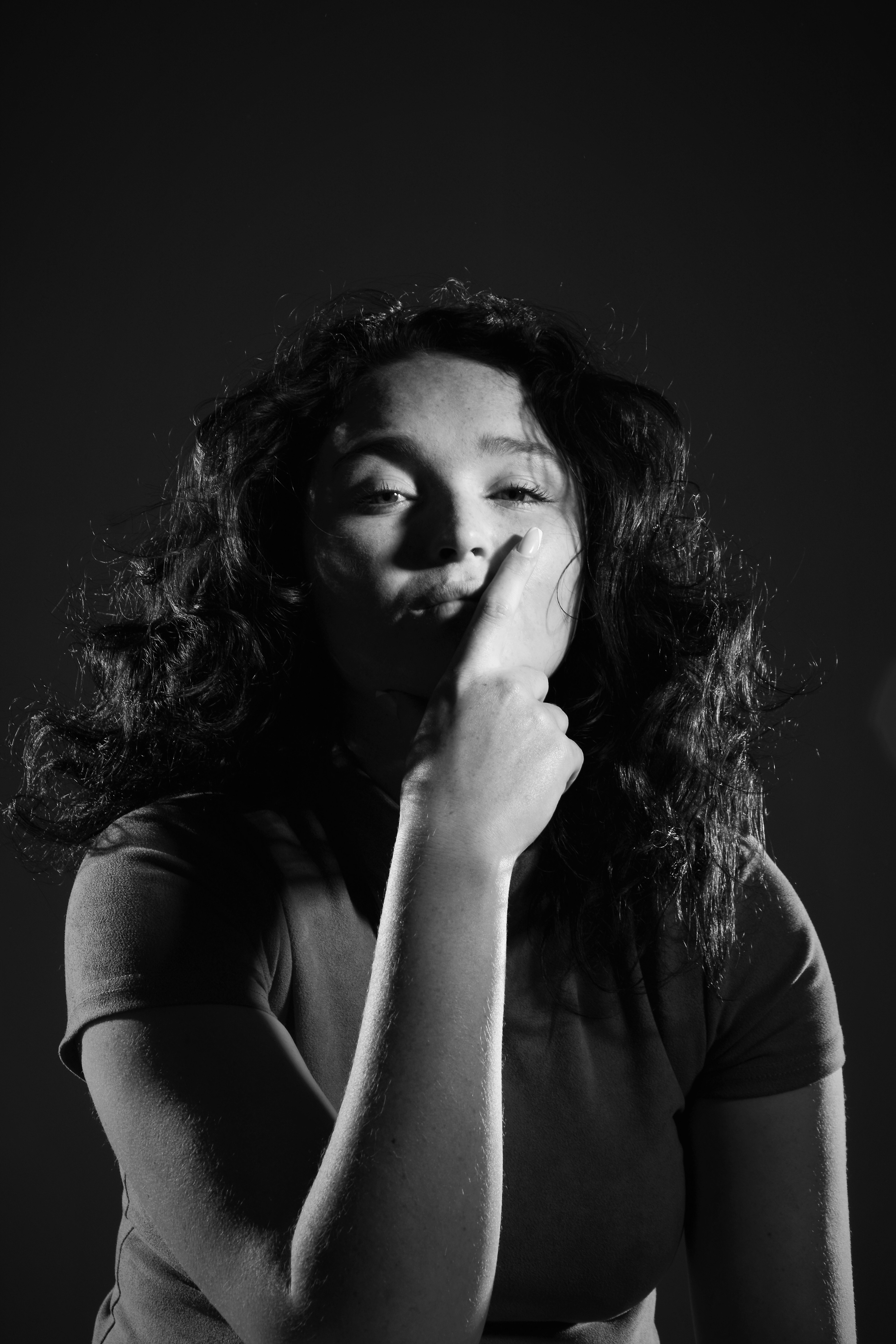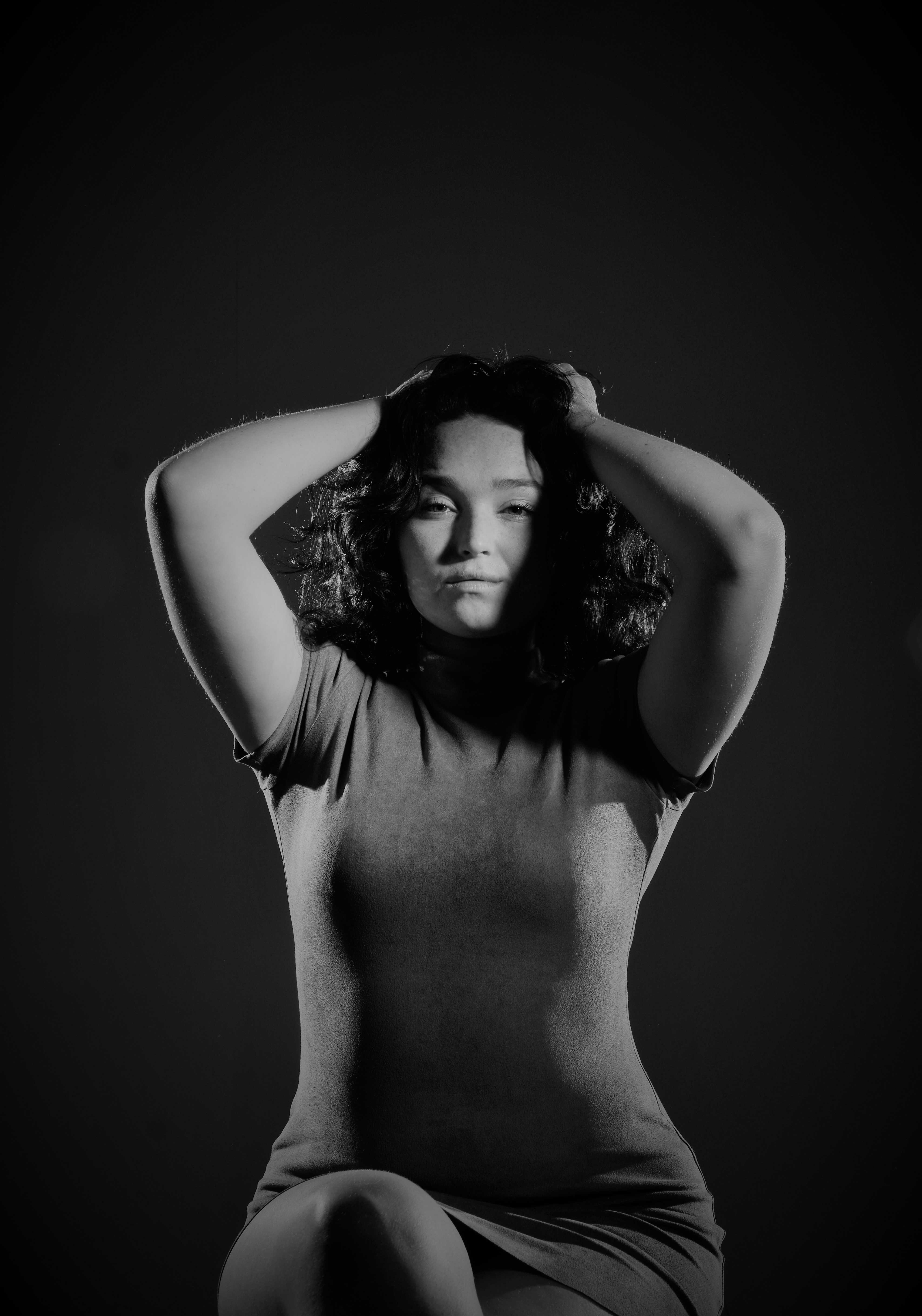 Ben’s visual inspiration is in mimicking the black and white aesthetic and outfits of the two hosts, both in suits, one black one white. Additional influences for the photographic genres in this project were surrealism and vintage Hollywood lighting and styling, ultimately converting all the images to black and white.
