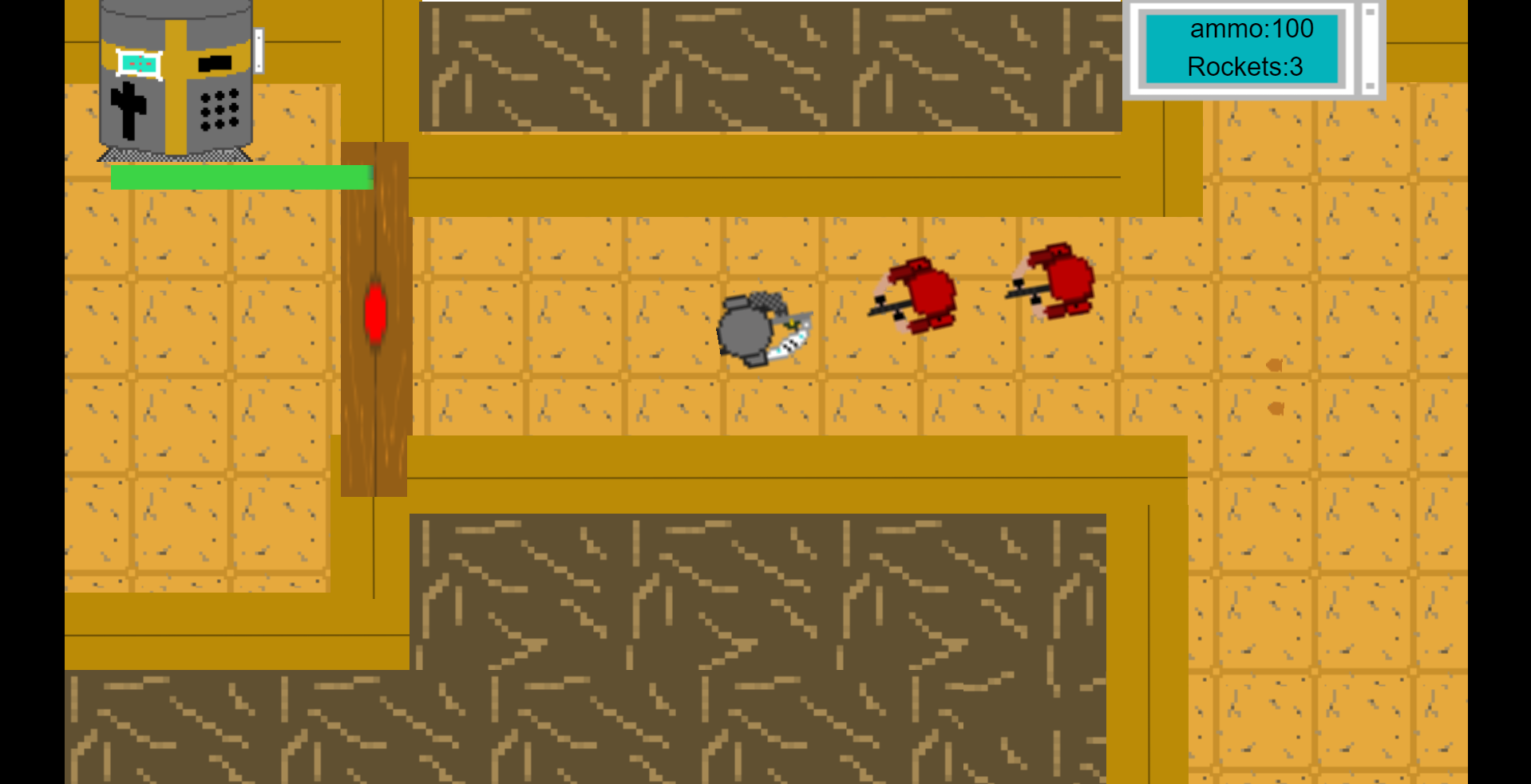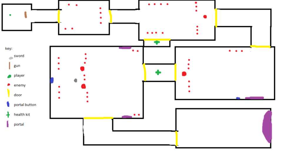 My final product is a game demo of a twin stick shooter I made using Construct 3 the game has a design focus on weapons. When I made the game I drew inspiration from the classic first person shooter DOOM for some areas of my project for example in the UI were I used the characters face as an indication of health.