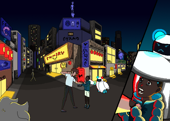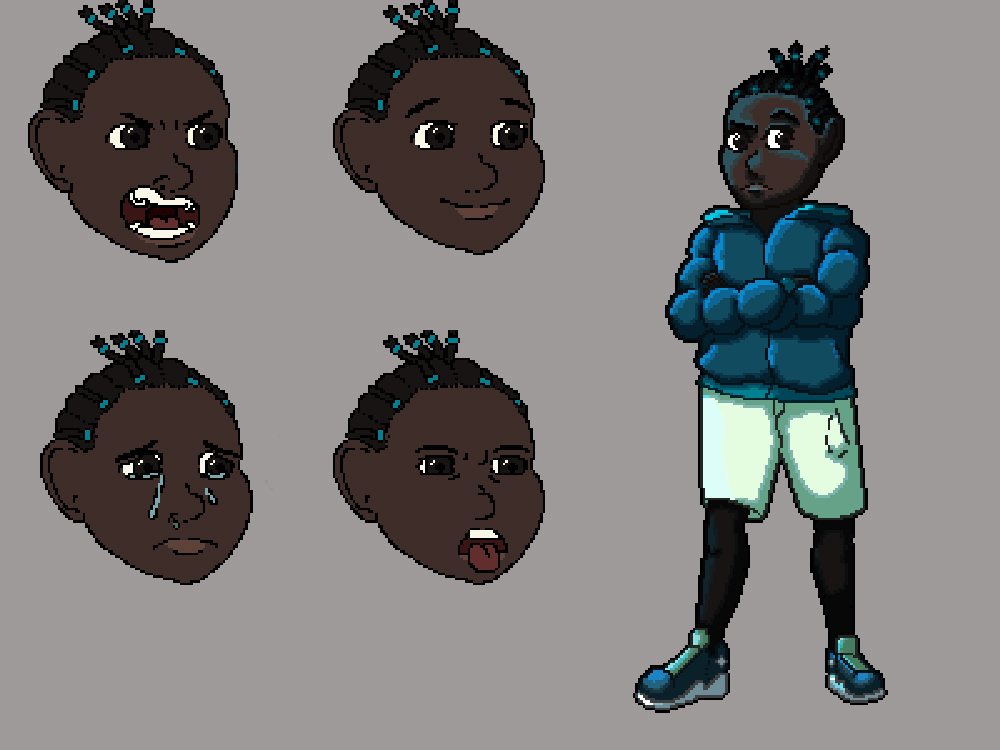 I wanted to make some characters for a sci-fi visual novel in which robots have taken over the majority of the workforce and made humans mostly redundant. This has led to high tensions between humans and machines. Therefore, its common place for children to be raised to hate and destroy robots. This is the situation of the young boy I designed. He often wonders the streets looking for robots to vandalise and destroy, that is, until he meets the humble paramedic robots.