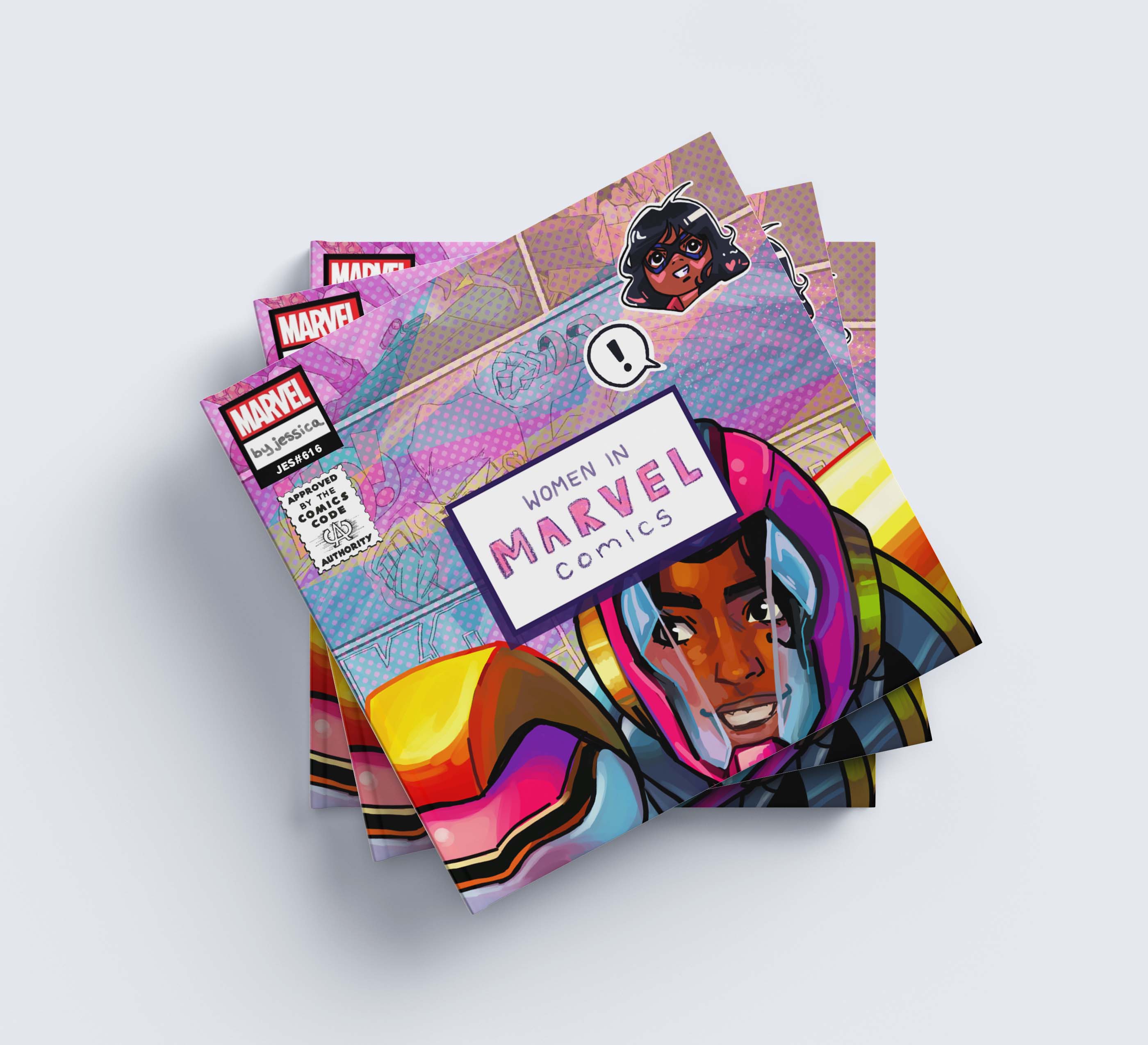 I created a 30 page Art book based on the Women of Marvel Comics. The project gave me the opportunity to try out many different styles of art spread across different mediums. I work both traditionally and digitally to create artwork for my book and digitally mocked up my final outcome.